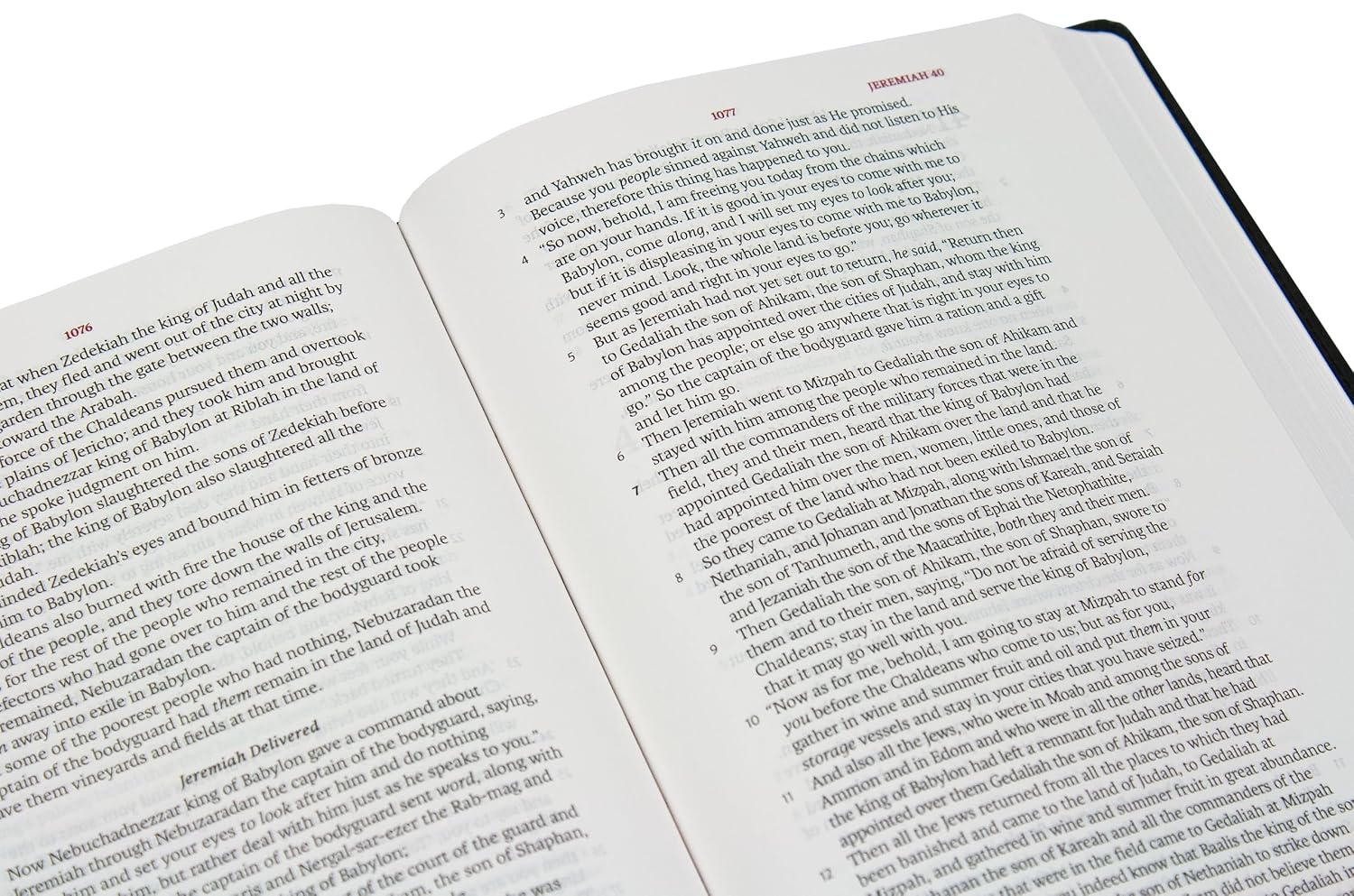 Black letter with red book titles, running headers, chapter and page numbers